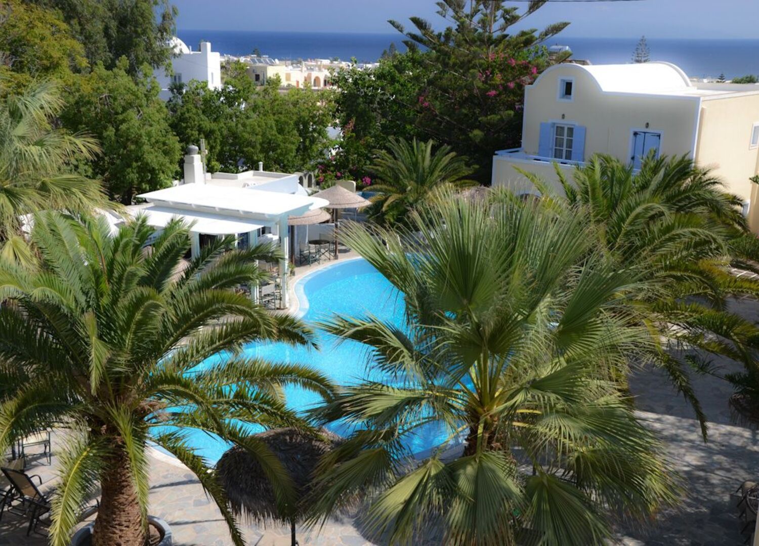This is classed as a three star hotel but is well beyond that . We stayed in a pool view room (not one of the highest rated ones) but from start to finish it was a brilliant stay. The staff were very friendly and welcoming from our arrival. The pool area was delightful with a superb bar and a lovely attentive bar lady who kept us refreshed during our time here. We had a slight problem with our air conditioning which was fixed within 10 minutes of reporting plus complimentary glasses of prosecco - very nice touch. The breakfast was excellent - the chance to sit outside each morning with the backdrop of the mountains was unforgettable. Location is perfect as well near both the Kamari strip and the centre with restaurants and bars aplenty. What a wonderful hotel experience - we recommend it wholeheartedly and would stay again.