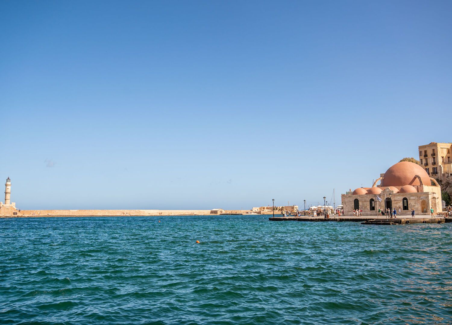 Buradan, dolaşmak üzere olduğunuz tüm sahili görebilirsiniz. Ancak bunu yapmadan önce kalenin girişindeki Girit Denizcilik Müzesi'ne uğrayın. Burada gemi örnekleri, gemi enkazı bulguları ve daha fazlası aracılığıyla limanın içinde ve çevresinde tanık olunan tarih hakkında (1941 Girit Savaşı dahil) bilgi edinebilirsiniz. Bir sonraki durağınız - Küçük Hasan Camii - körfezin karşısında, ancak oraya varmak için acele etmeyin. Gezinti yerinde sıralanan tavernalar ve barlar, yerel halk ve ziyaretçiler arasında popülerdir. Küçük Hasan Camii (Yali Tzamisi – ya da “deniz kenarındaki cami” olarak da bilinir). 17. yüzyılda antik bir Yunan tapınağının üzerine inşa edilmiştir. Artık minaresi yoktur, ancak klasik Osmanlı tasarımı, merkezi kubbeli bir bina ve her iki taraftaki yedi küçük kubbe ile uzantıları içerir.