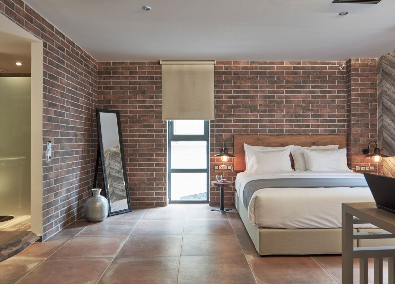Drawing inspiration from the namesake of our street, our buildings past industrial life, and Psiri’s monumental transformation to a burgeoning hub of creativity, we have turned a historic workshop into a unique destination. There are more stories in our walls and in our streets than we can count – and it’s this rich and varied past that guides everything we do. Each room has been thoughtfully and individually designed using the 3elements of construction; cement, wood, and brick.