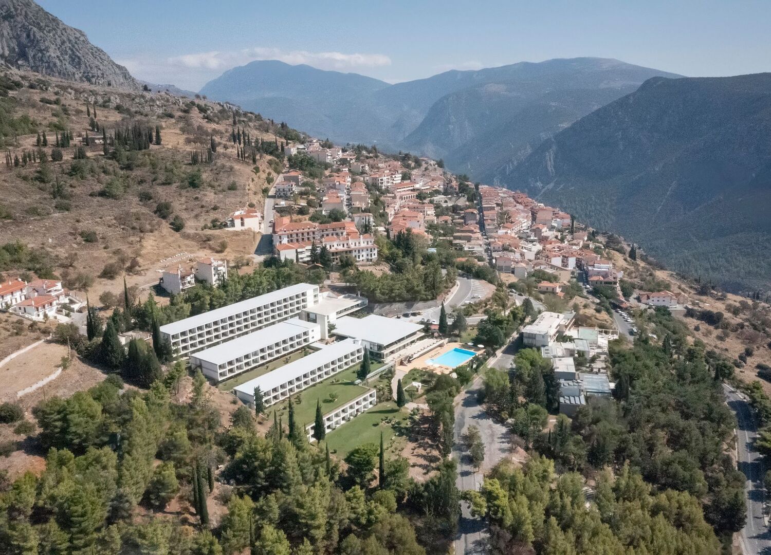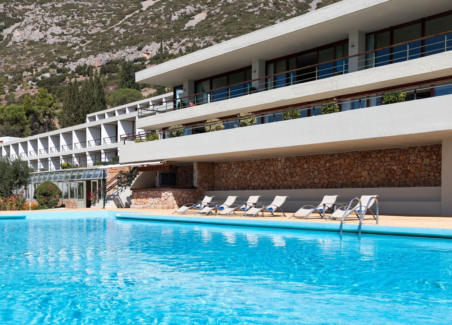 With its modern architecture, built in complete harmony with the surroundings, at the foot of the mountain, offers you a breathtaking view of the valley all the way to the sea and the beautiful village of Galaxidi. Entering the lobby you will be owed by the scenery and most probably you will not want to leave the place. Spacious, comfortably appointed rooms, restaurant offering local flavors that faces the pool and the gardens, and a bar with fireplace where you can relax while enjoying your drinks.