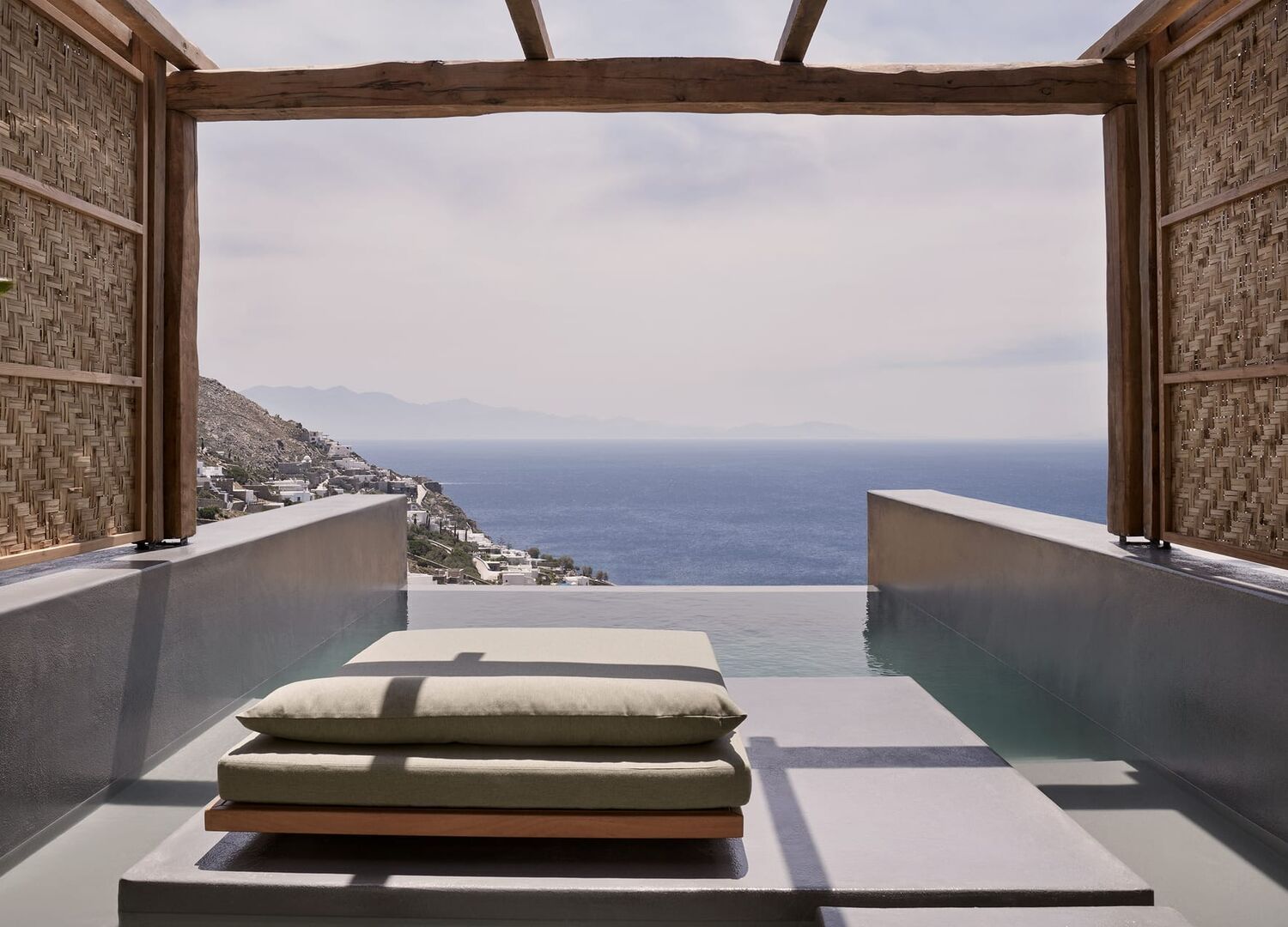 In splendid isolation on a reclining hill with a majestic overview to the Elia beach, the complex is making ingenious use of natural materials, as well as the element of water.