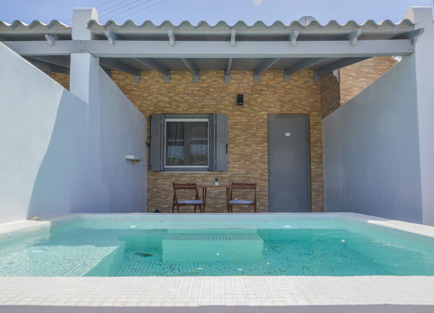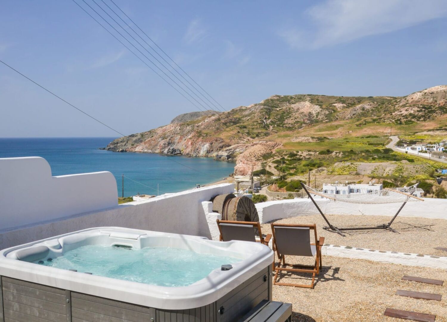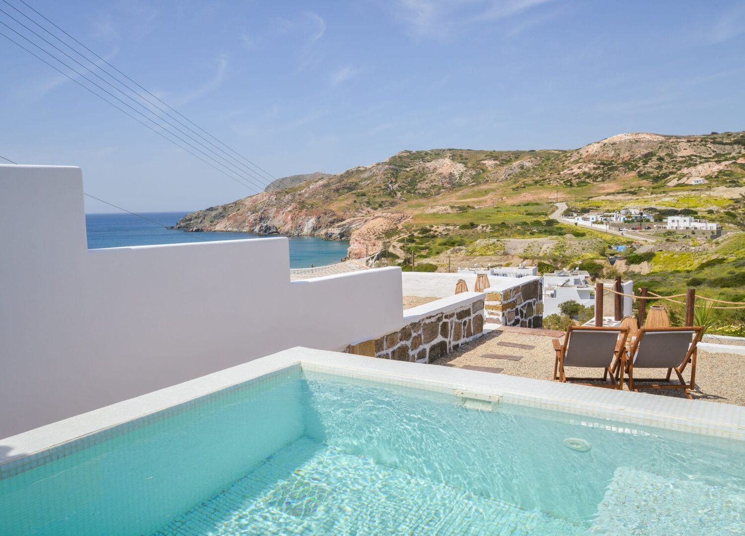 Located on Milos Island in Paliochori Beach just 150 metres away from the beach , you can enjoy the sea view from your balcony and your private mini pool or jacuzzi. Our rooms have double queen size beds and you can find a boiler for hot water,air conditiong , wifi internet , frigde and wine glass. We also provide breakfast service at your room.