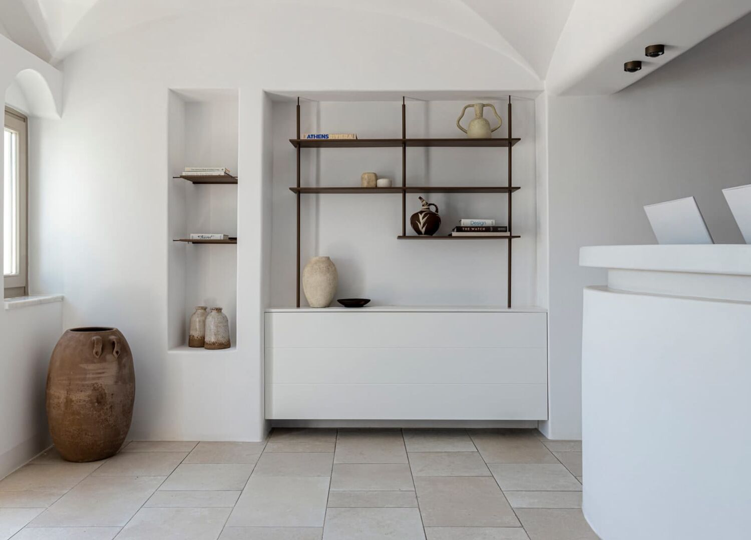 Cut into the volcanic cliff face in the pretty village of Oia, Canaves Ena provides and inspiring selection of suites carved into the rock overlooking the caldera.