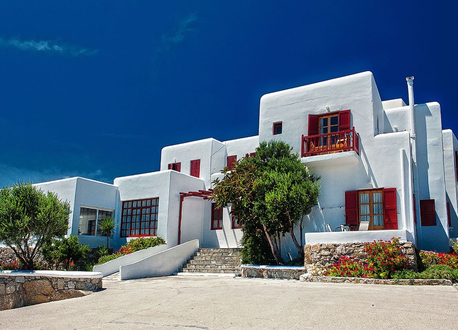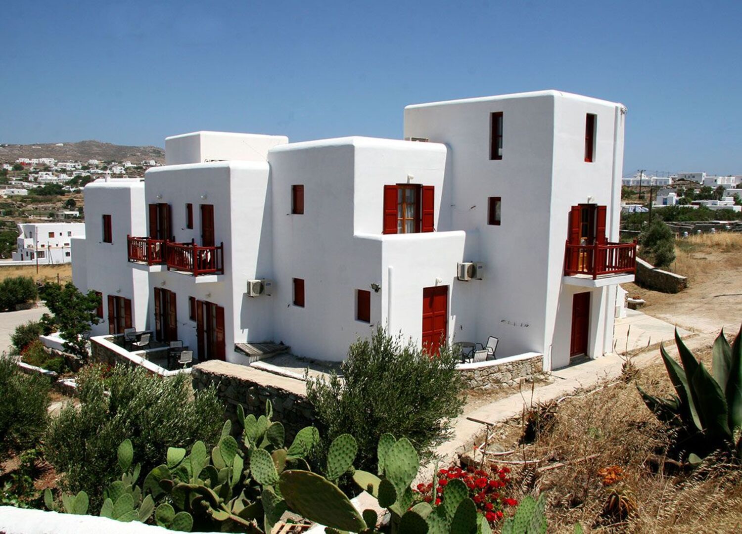 Charissi Hotel in Mykonos is a family owned accommodation, offering friendly traditional Mykonian hospitality and spacious rooms. Located 800 meters from Mykonos Town, in the Vryssi area. The hotel has a prime location in Mykonos, situated on a hill. Charissi hotel is ideal for those who wish to be within a walking distance of the town center but also favour a quite location.
