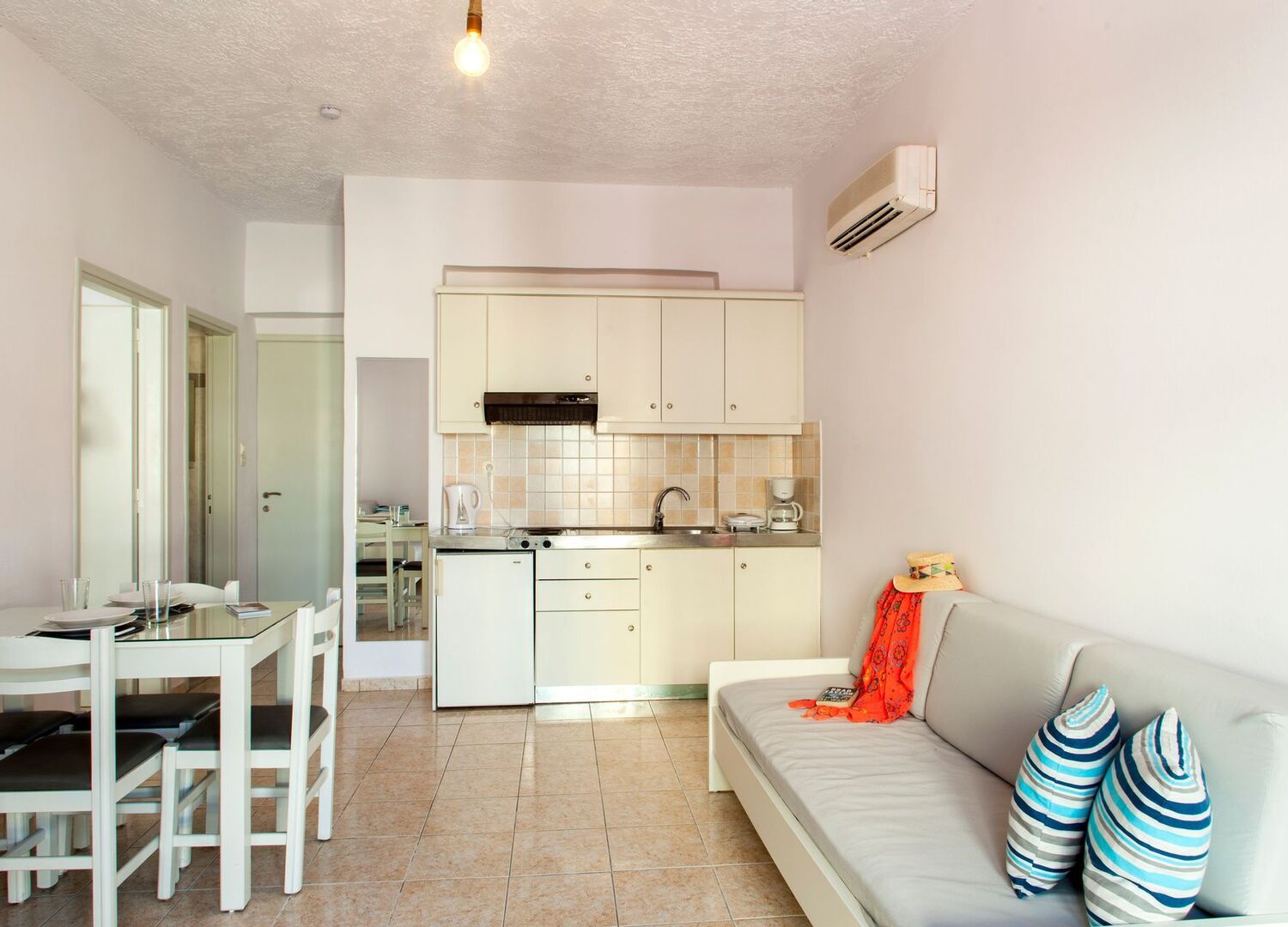 I had wonderful 2 days from June the 5th till 7th. The owners are welcoming you very friendly and with big hospitality. Not in every hotel, they have the same warmth way to meet you with. So you feel very relaxed already with the first meeting. Lovely apartment with long balcony. I like the quiteness there and if you want it more noisy, you just go few meters to the more traffical road, where shops are. Restaurants and bars will you see in front of the beaches. Take a walk there and just enjoy the relaxing ocean. What I did like about this new renovated hotel was also the little pool area for relaxing and if you choose to have breakfast inkluded, you will cerdenly not be dissapointed. I felt, like a very importent person getting such a big choise for breakfast . And when, you are there visit the 2 nearest Villages around 2 km away walking the same road, where the hotel is standing. Koutoloufari and piskopiano are a sight for calmness and to enjoy nice food. Near the hotel just 200 m away, there is a small Aquarium worth visiting and if you want to see more, there are a bigger Aquarium in Gouves a few kilometer away. And when you are in Hersonissos take the little train around the city. Thanks Elychryson 👍✌