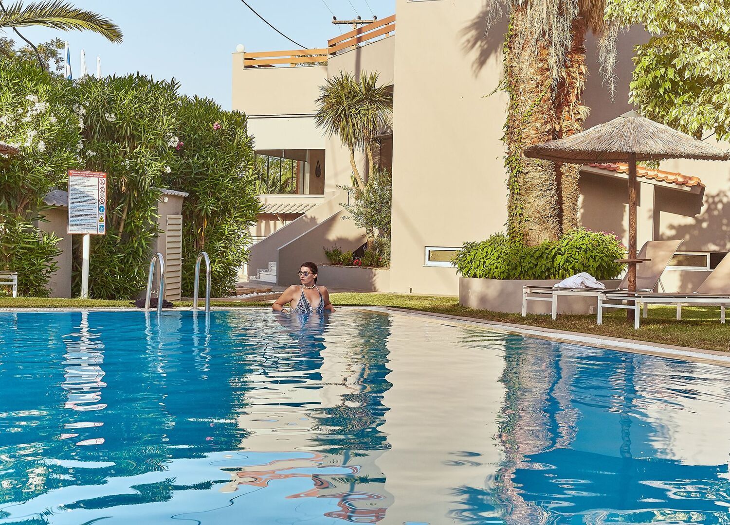 We highly recommend this hotel. The hotel is small, well-kept, located on the edge of a quiet town. The hotel has a very clean swimming pool, as well as sunbeds and umbrellas. Guests have beach towels at their disposal at no extra charge. In addition, just across the street there is a beach with sunbeds and umbrellas, which are free for hotel guests. On the beach there is a hotel employee who takes orders for drinks and meals, which are delivered to the beach for guests. The same service is available at the hotel pool. Prices are the same as in the taverns nearby. The hotel hosts were very smiling and helpful. You could talk to them, but they were not intrusive. We felt very well looked after. When we wanted to go to a wild beach, we asked for a beach umbrella. After an hour, they lent us one.