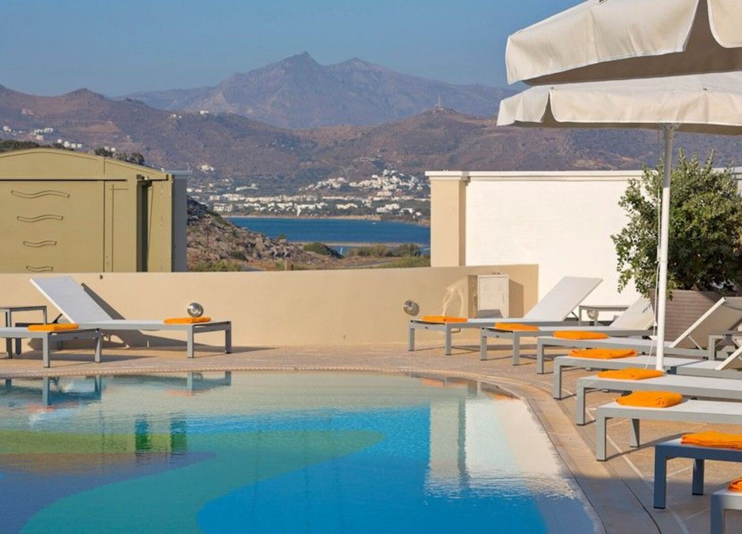 The hotel enjoys a premier hillside position at a privileged and quiet area close to Agios Prokopios beach and it is built amphitheatrically offering marvelous views of Naxos Town and makes an excellent accommodation for peaceful and comfortable holidays.