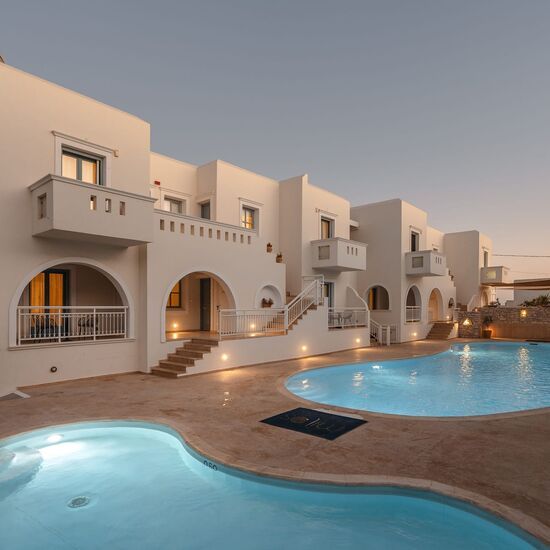 Mitos Suites is a boutique hotel located in Naxos, just steps away from the center and the beautiful Agios Prokopios beach. The hotel features 8 carefully designed suites with a minimal aesthetic and romantic touches, offering a tranquil escape blending authentic Cycladic architecture with discreet luxury. With two spacious swimming pools and dedicated children's spaces, guests can enjoy moments of refreshment and relaxation under the Naxian sky. The hotel's strategic location allows for easy access to local attractions, the port, and the beach. Mitos Suites is a distinguished destination in Naxos, where style, comfort, and well-being converge to provide an unforgettable stay.