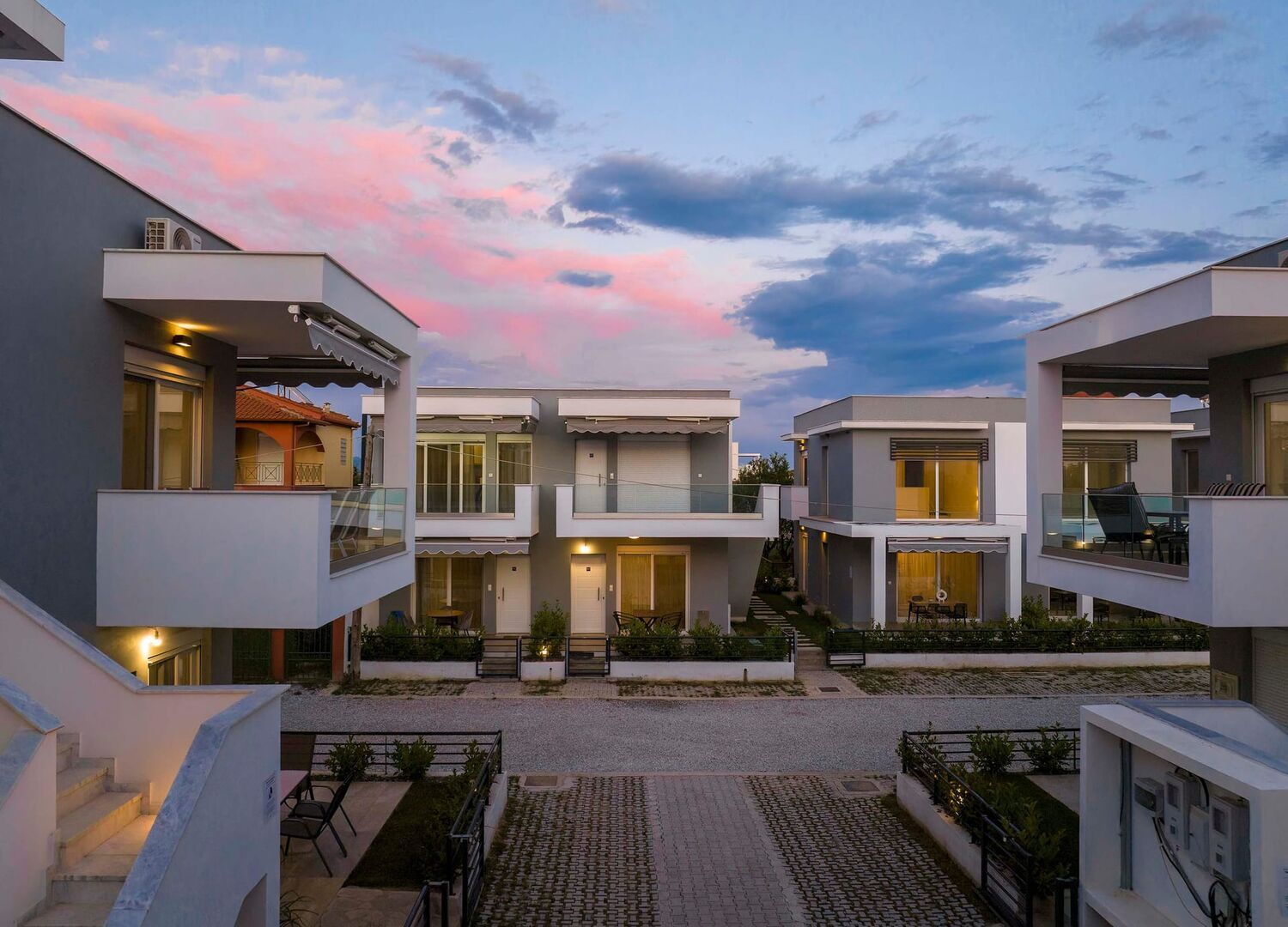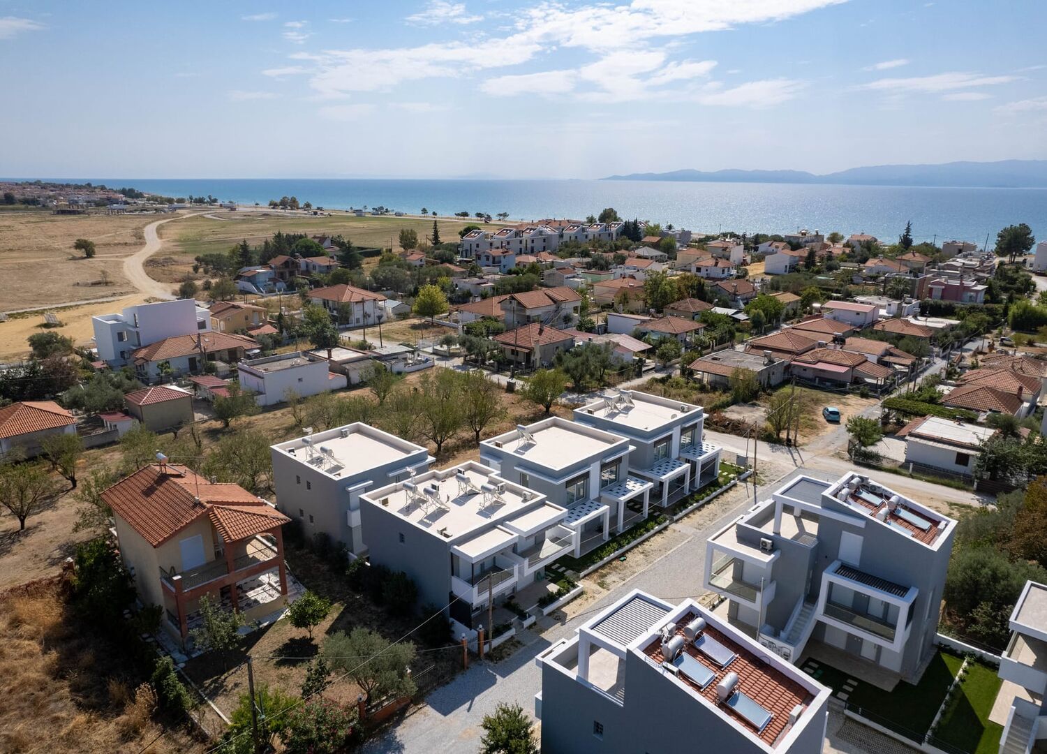 A few minutes walk from the sandy beaches of Ofrynio where you can just drop your towel and enjoy the blue waters with a direct view to Mount Athos! Roxani Residential Complex one of our brand new complexes offers one or two-bedroom apartments with all necessary facilities for long and well deserved vacations. From your balcony or terrace you can relax within a green peaceful environment.   Parking spaces are also there for you to use at no extra charge.