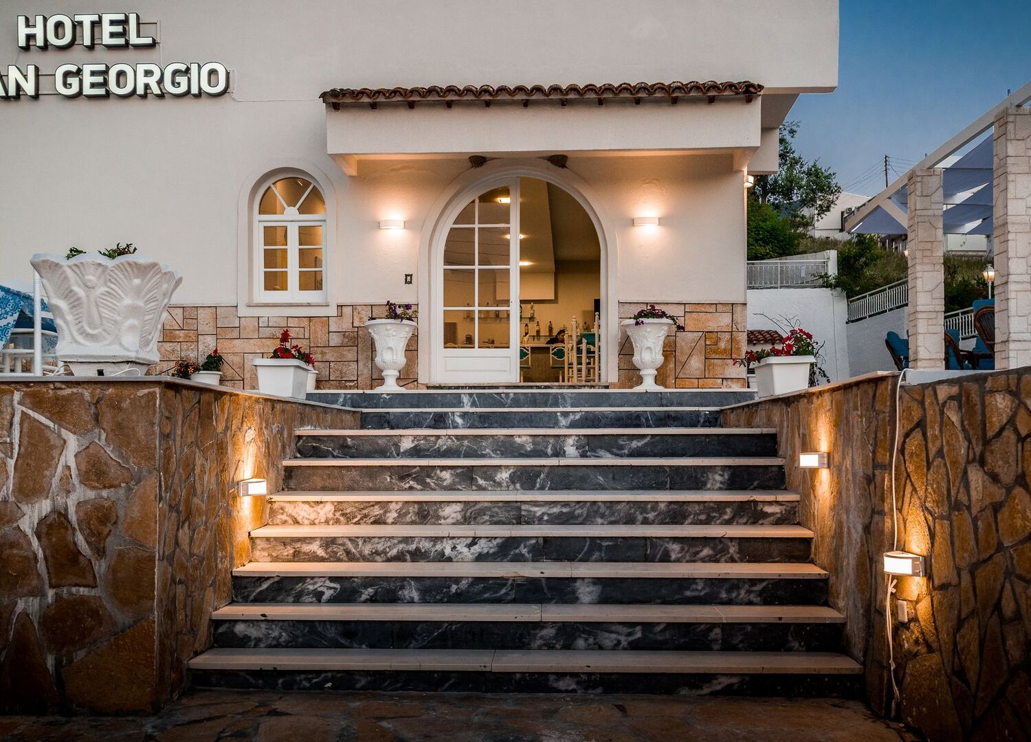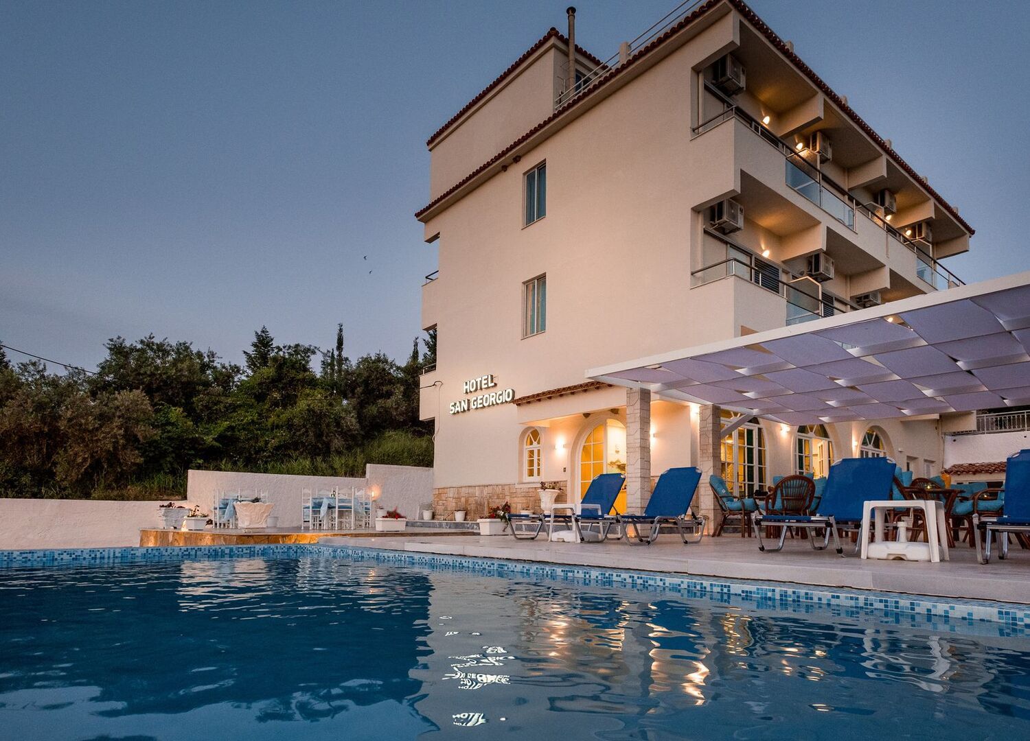 A simple trip can become an unforgettable experience. The San Georgio Hotel with an infinity outdoor fresh water Pool, in the North of Corfu Island, offers renovated rooms, continental Breakfast in an excellent location in Agios Georgios Pagoi, only few meters from an emerald beach, blue flag awarded. Renovated to the highest architectural standards to create a modern, functional and comfortable mini hotel.