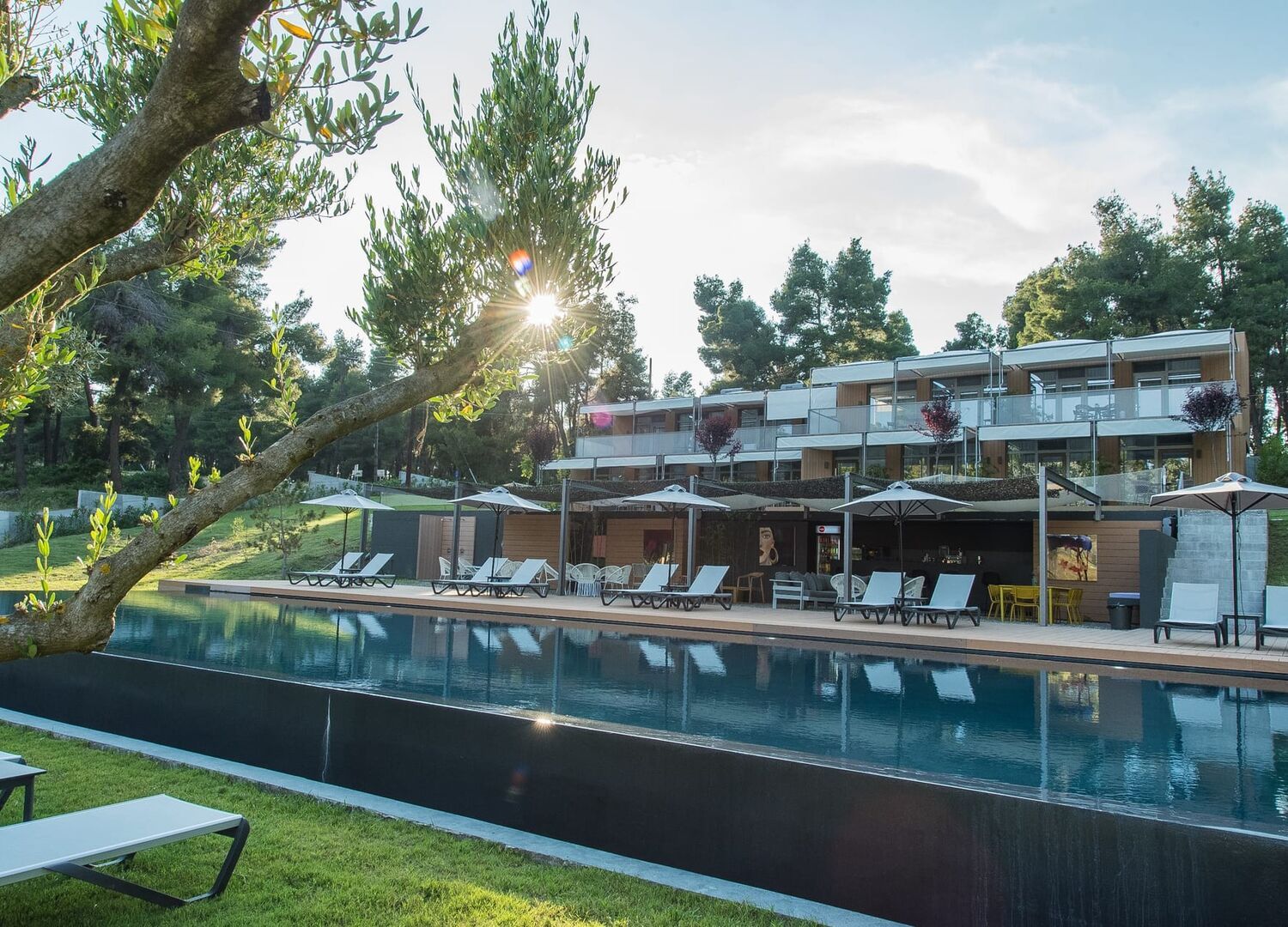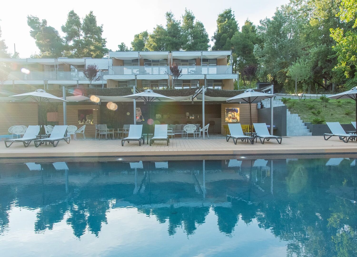 Sani More & Sani Woods consists of 19 carefully designed rooms, offering an intimate and exclusive atmosphere. Each room is decorated in a modern style, equipped with all the necessary comforts, and boasts a private balcony with a view of the pool, allowing you to enjoy the serene natural surroundings.