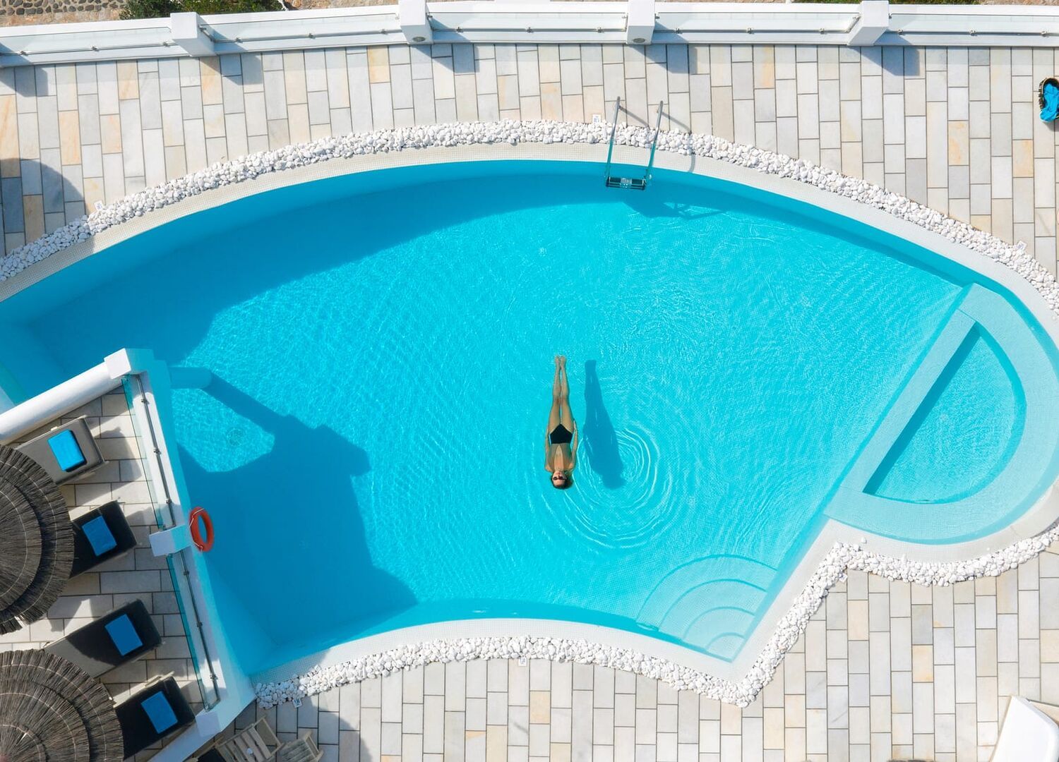 The outdoor swimming pool is a serene oasis, where the warm Mediterranean sun projects a golden glow, inviting guests to immerse themselves in its crystalline waters. Soak in the tranquility of the captivating turquoise scenery while sipping a refreshing drink at the pool bar.