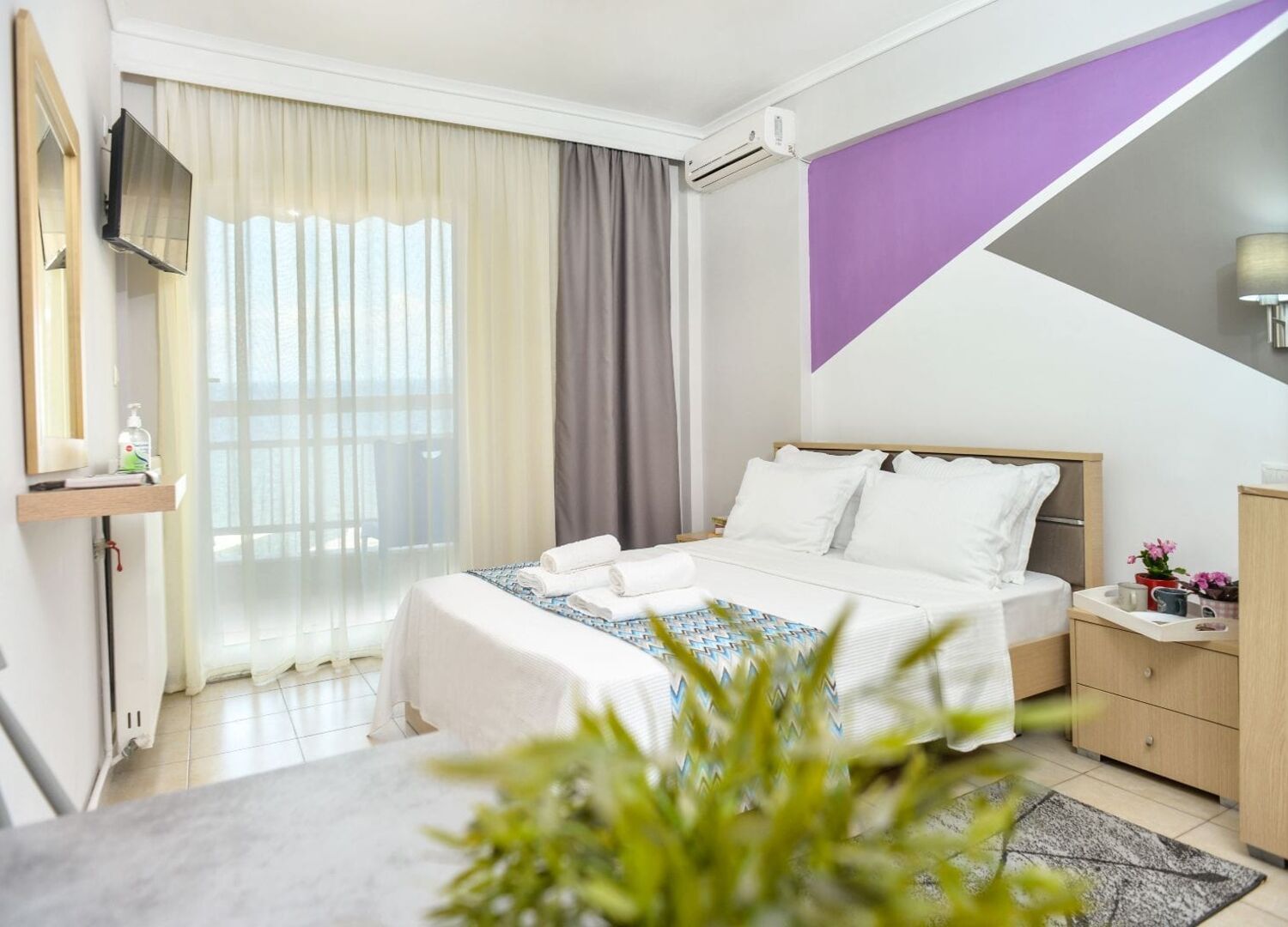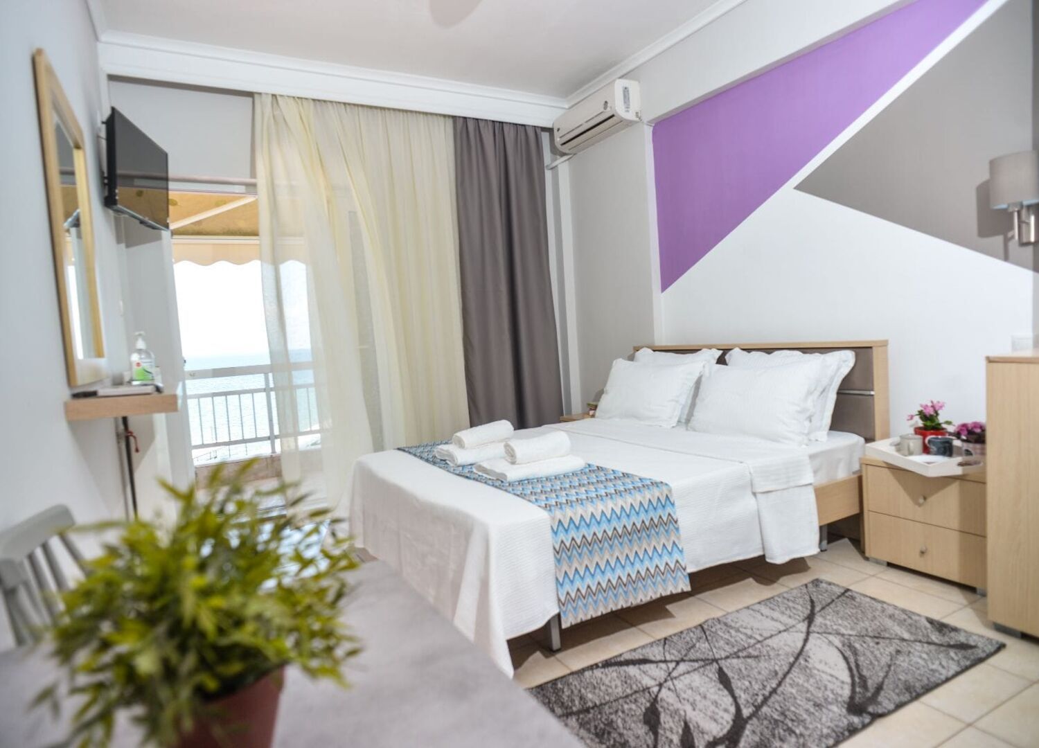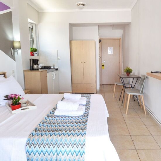 Located at the heart of Peraia, Vento di Mare offers a welcoming getaway with stunning sea and town views, just a stone's throw from the beach. The property features a selection of seven thoughtfully designed accommodations, including sea-view studios, cozy double rooms, and a rooftop suite with a private terrace. With fully equipped kitchens in select rooms and modern amenities like air conditioning and complimentary Wi-Fi, Vento di Mare ensures a comfortable and convenient stay for all guests.