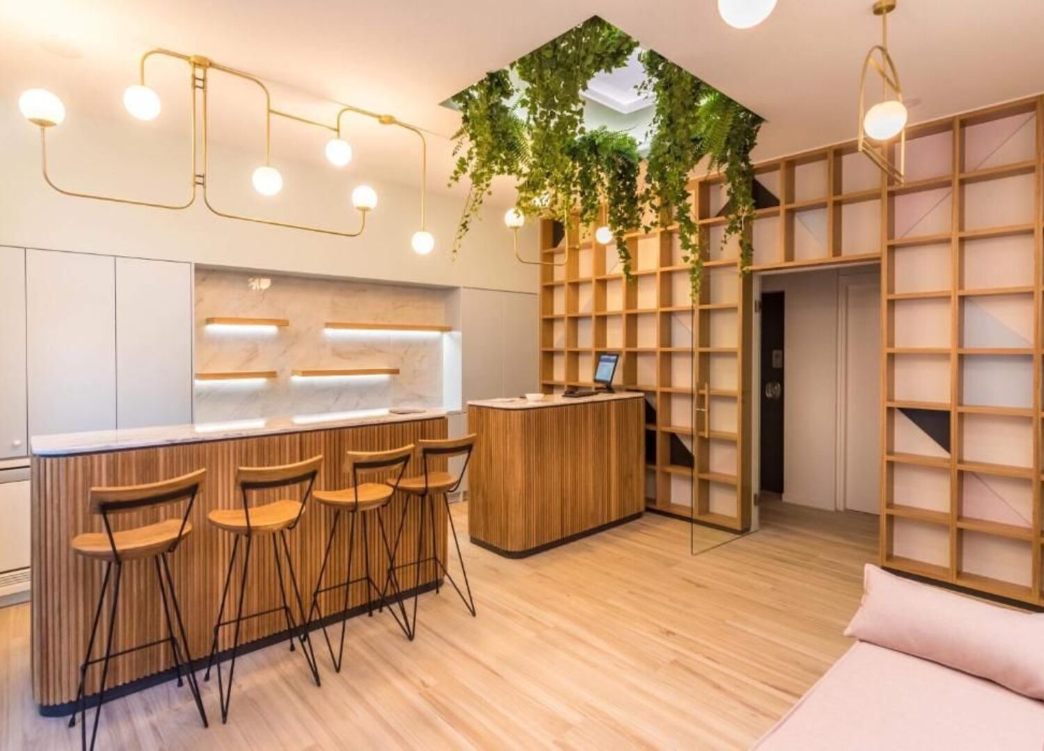 The colors of the facade and the proportions of the openings follow the rules of the architecture of the city. The lighting was an important tool in the design of the hotel. Hidden lighting and unique light fixtures creates the atmosphere needed for a hospitality space.