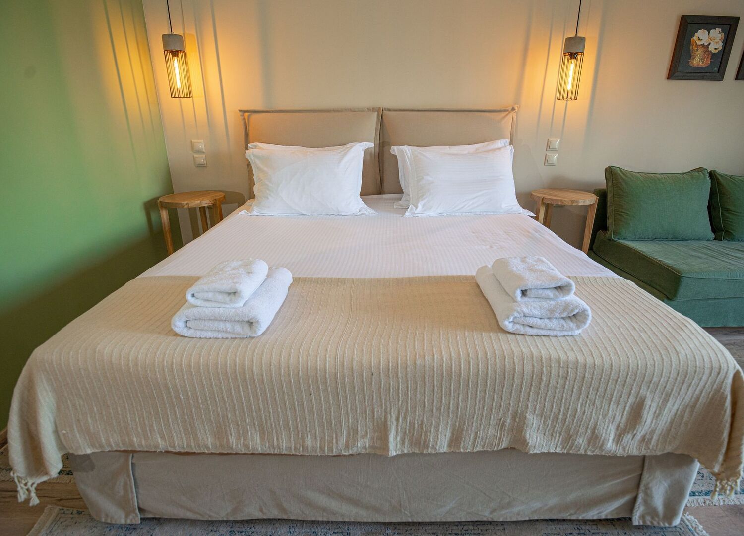 Dressed in stone, wood and bronze and focus on contemporary standard, offers to the visitors the warmth of the traditional simplicity and the comfortable accommodation is ensured. Tsipouro of the local wildgrape and tasty food served next to the fireplace. Coffee, with view towards the dancing jumps of the squirrels on the trees. Unforgettable lullaby from nightbirds.