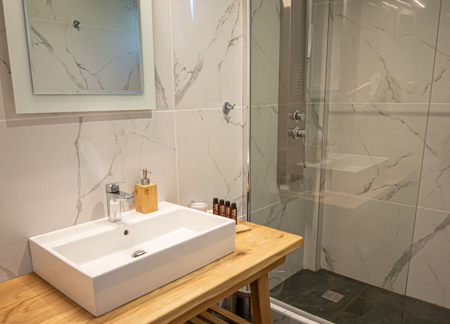 Great location, several minutes drive from many hiking trails and farther points of interest. The village center with all the taverns. The hotel is clean and beautifully designed. Get a lot of useful information and tips from the stuff (a specially from Maria). The breakfast was exceptional and served in a beautiful veranda with the glass ruff. The total experience was exceptional