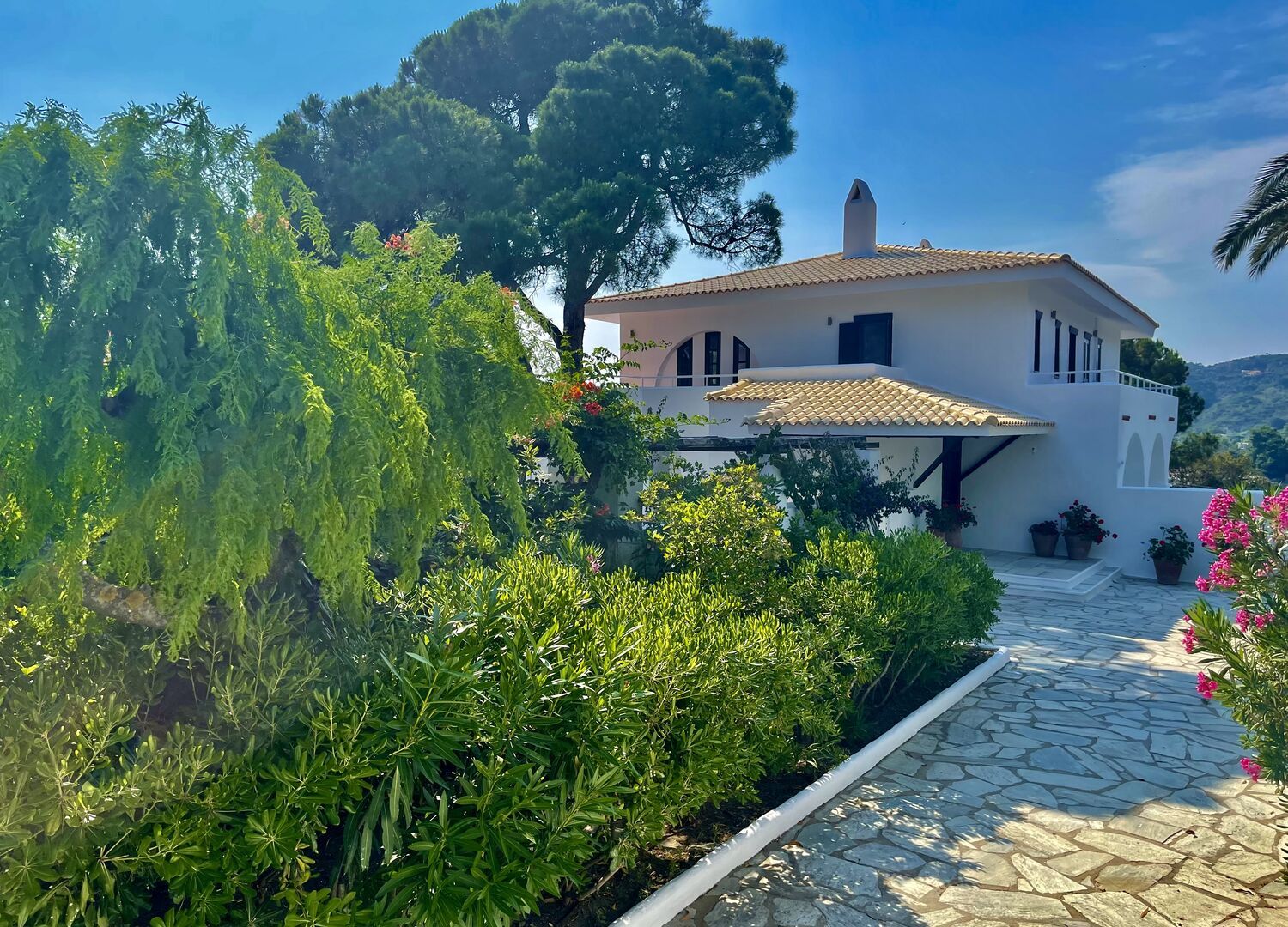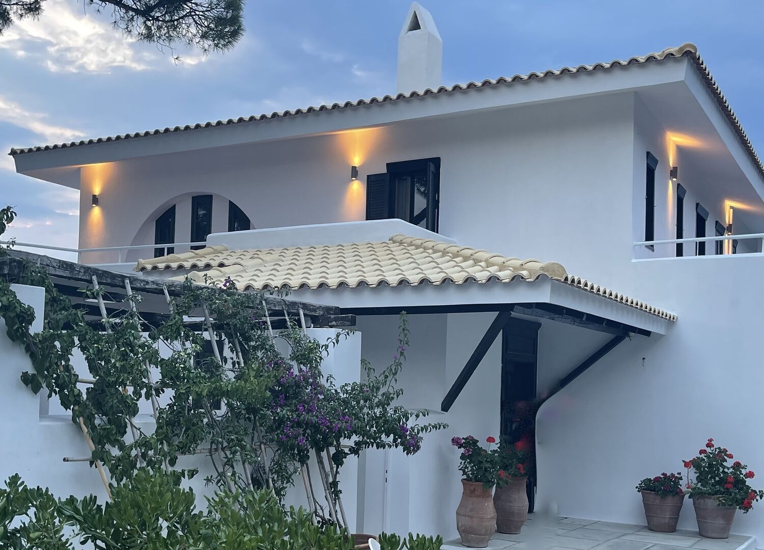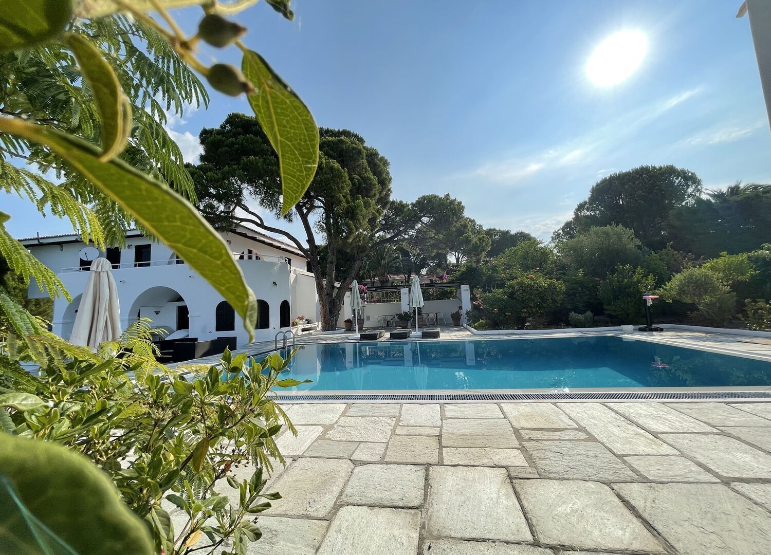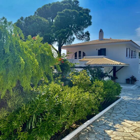 The Azero Villa Skiathos is a luxurious villa located on a peninsula between the beaches of Kolios and Vromolimnos in Athens, Greece. The villa features a pool, secluded beach, main house, guest house, private parking, pergola with dining area, and garden. Guests can enjoy uninterrupted views and magnificent sunsets from the property.