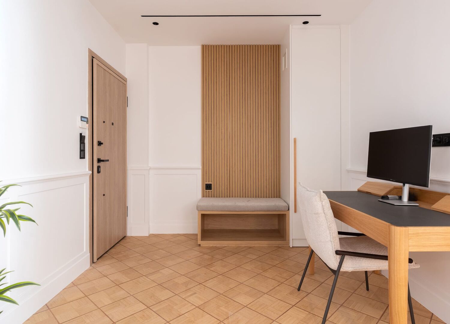 Designed with smart home technology, the apartment features a KNX system, allowing you to control lighting, curtains, and shutters effortlessly. A dedicated workspace makes it an excellent choice for remote work or study.