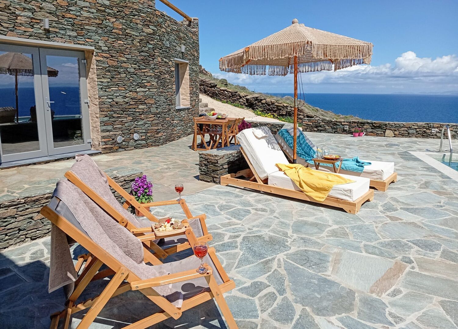 We are currently staying in Mandrokathisio and really everything is great. The view from the veranda is breathtaking, especially the sunrise over the Aegean Sea. As for the evening, the moon as it shines in the calm sea is a dream. The location is directly accessible by car. The accommodation is new, spotlessly clean, with modern decoration and all the amenities we need. The pool is a gem, quiet and perfect for relaxing. The environment is so welcoming that we don't want to leave! !