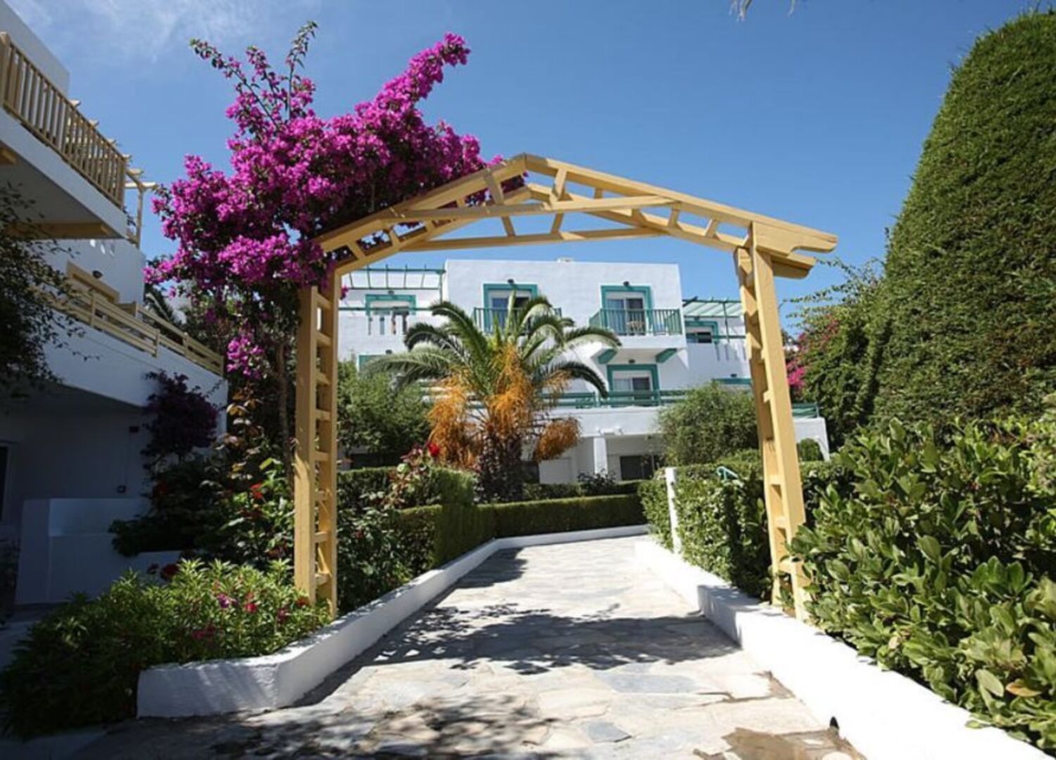 Great hotel with great location and affordable price. It is located not far from the airport. 10 min drive only Hotel staff were very helpful and friendly. Everyone is smiling and in a good mood and you really feel very cozy and comfortable. The territory of hotel is amazing and terrific. All this Greek style white houses among green trees and vivid flowers. It looks like a dream. Walking through small stairs and arches was a pleasure. The territory is very well looked after. Bar. We attended it on everyday basis. The cocktails were quite amazing (especially Piña Colada). The staff were also very friendly. Pools. There were two swimming pools, but we haven’t tried them because of the reason below. Beach and sea. Gorgeous. If you walk a little to the right along the beach, you will find great view and maximally comfortable place for swimming. That beach hasn’t been noticed first day of our stay, but when we found it we spent the rest of vacation only there. Beautiful blue water with sandy beach.