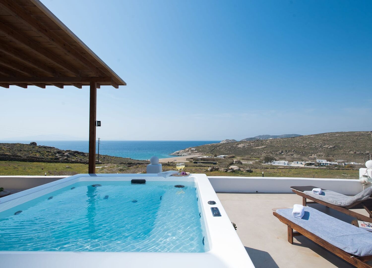 The Villa is located on the southwest side of Mykonos, up to Lia beach. Ideal for a relaxing holiday. Made of large spaces, the residence is built with the traditional architecture of the island in the pastel colors of Mykonos. 3 bedrooms with their own bathroom, living room and kitchen, all in Cycladic style, immerse you in the Greek atmosphere. Outside a beautiful private pool with garden, parking and a terrace where you can enjoy the view of nature and the Aegean Sea.