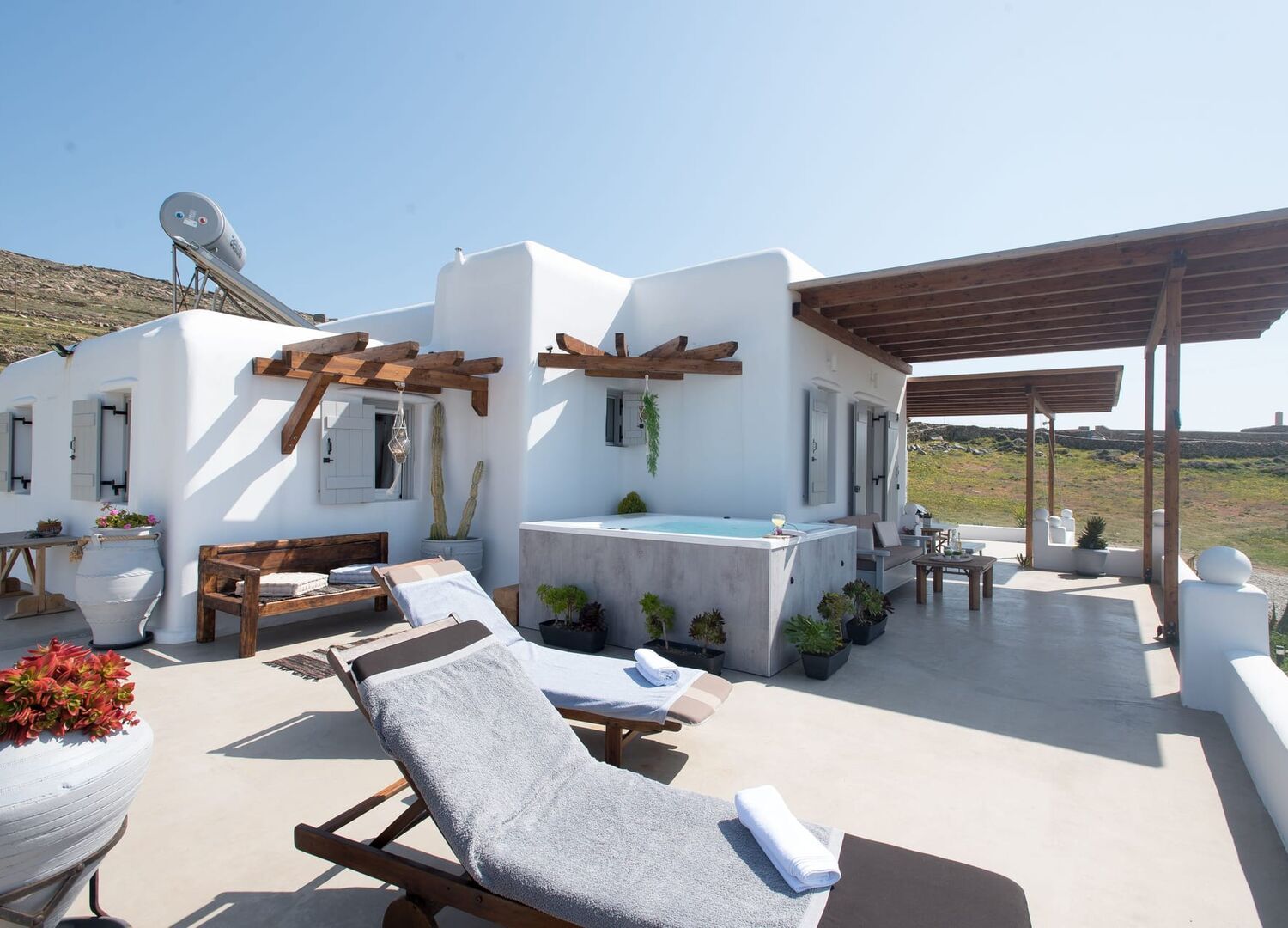 My Evilia Villa is a charming retreat located on the southwest side of Mykonos, near Lia beach. This traditional Cycladic-style villa offers three bedrooms with private bathrooms, a spacious living room, and a fully equipped kitchen. Outside, guests can enjoy a private pool, garden, parking, and a terrace with stunning views of the Aegean Sea. Perfect for a relaxing holiday immersed in the beauty of Greece. Address: Mykonos - Lia Beach.