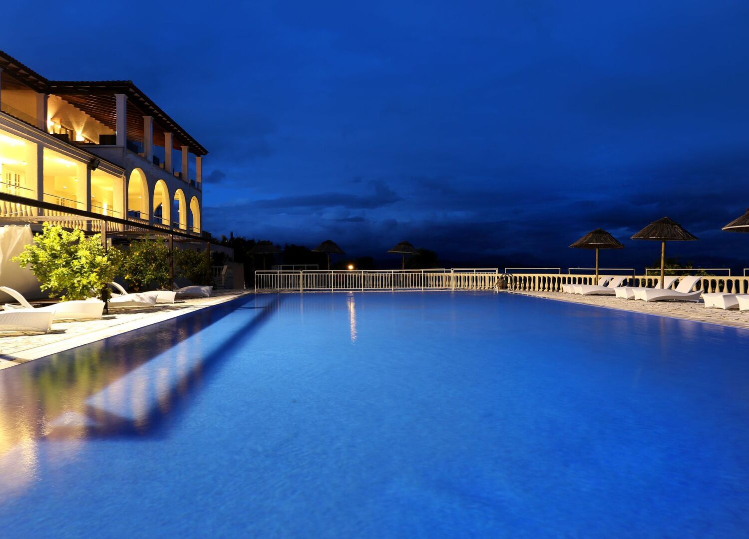 Pantokrator Hotel is built in the typically Mediterranean architectural style where the amphitheatrically setting of room blocks provide a village-style environment and stunning views. The 102 rooms are boutique-style each with its own unique character. The interior decoration makes them each one of a kind while large balconies with their stunning views over the Ionian Sea, Corfu town, the Greek mainland and the Albanian coastline ensure a tranquil carefree summer holiday.