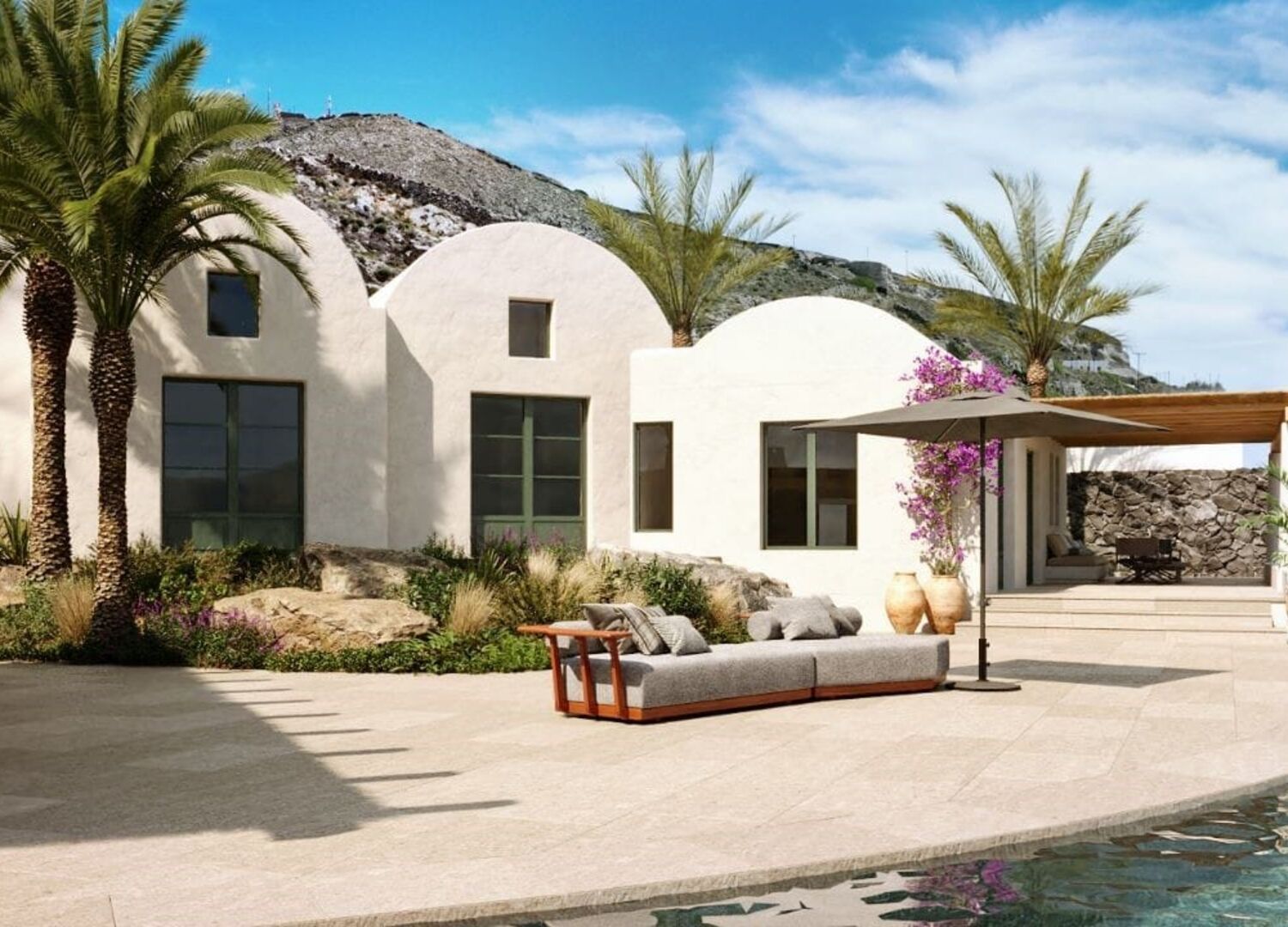 Surrounded by vineyards, organic kitchen gardens for farm-to-fork feasts, hiking trails, and sensational 360-vistas in all directions. Little known footpaths connect the property to the authentic villages of Pyrgos and Emporio, the cliff-top citadel of ancient Thira, and Profitis Ilias monastery, poised on Santorini’s highest peak.