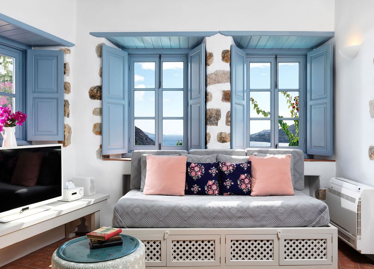 Amazing hotel, views of the harbour and skala port. Rooms are spacious, really nicely laid out, and super modern. Great and free minibar. Breakfast was incredible and Nikos kindly picked us up on the first day at 1am because the ferry was late. Would highly recommend it to everyone.