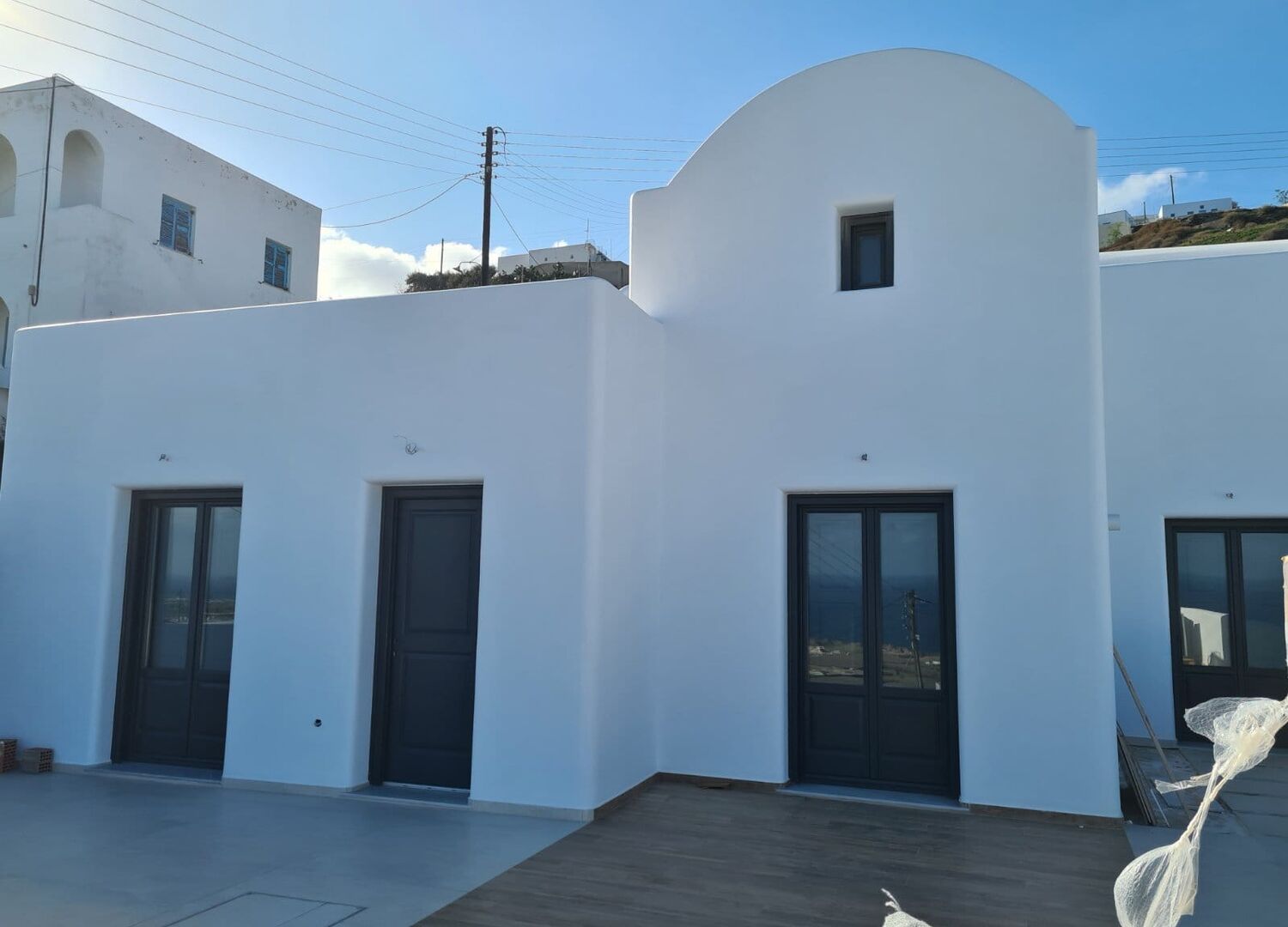 The apartment, suites, and villa are all spacious and elegantly designed, all newly built in 2023 combining tradi- tional aesthetic with modern materials, all with large windows that offer stunning views of the Aegean Sea and the sunrise on the east side of the island. Each room is equipped with modern and luxurious amenities like air- conditioning for cool and heat, free fast Wi-Fi in all areas, flat-screen TVs with satellite channels, tablets in all rooms, bluetooth speakers, weigh scales, ironing equipment, fine linens and towels, and of course comfortable beds that will ensure you have a restful sleep.