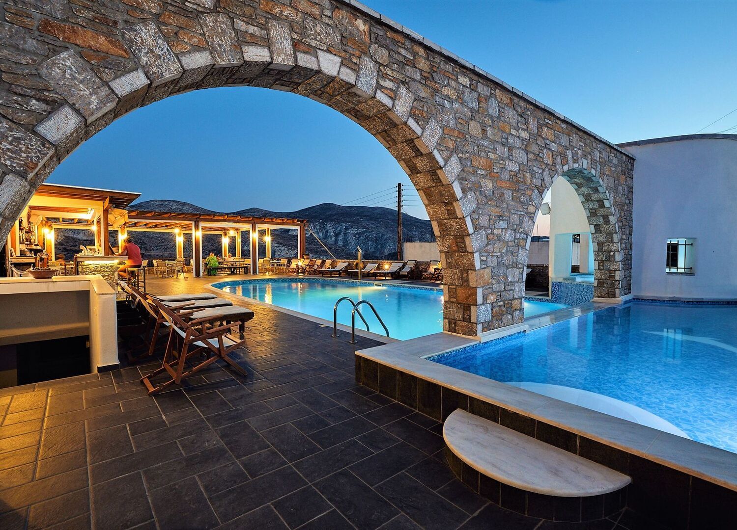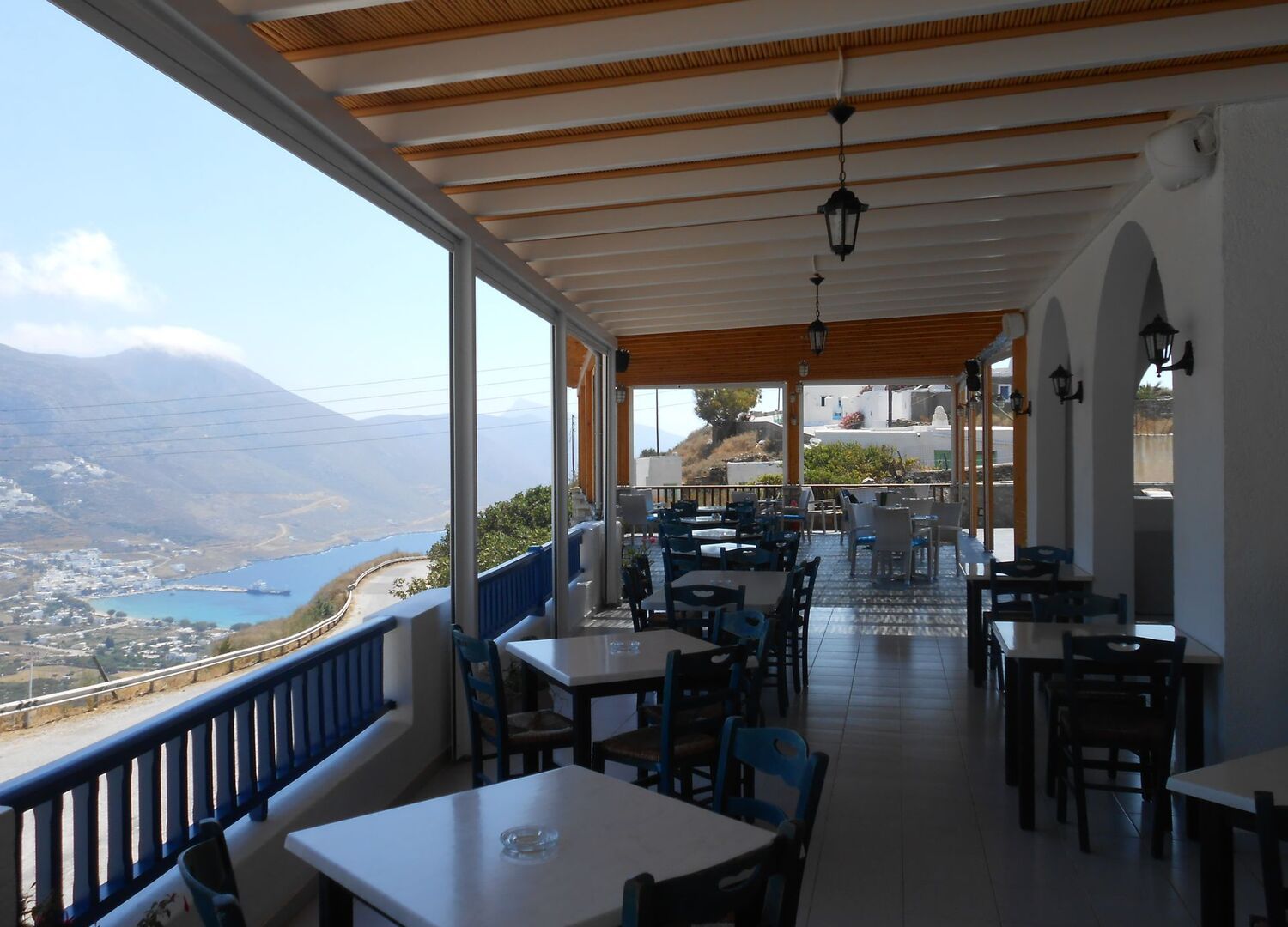 You are invited to indulge in gazing down upon the panoramic view of Aegiali bay, the stunning mountainous landscape of Kroukelos and the eye catching villages of Lagada and Potamos.